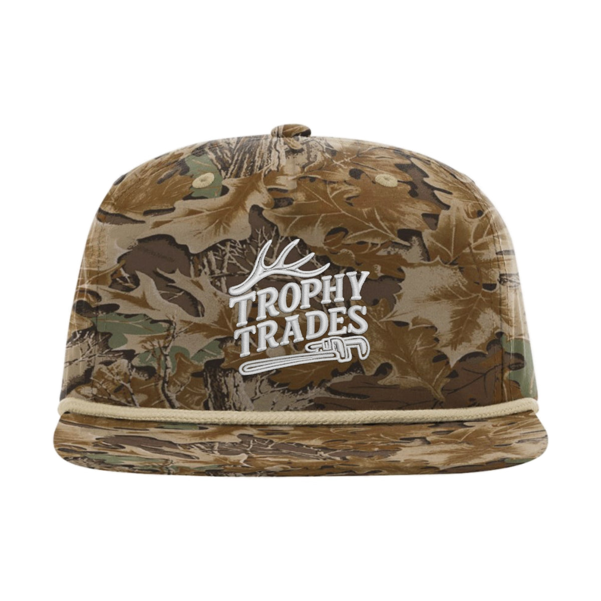 Constructed from lightweight, durable polyester twill, this hat delivers all-day comfort with a standard cotton sweatband and vapor barrier to help manage sweat. The flat bill with classic rope accent adds heritage style, while the mesh flip-up stay and adjustable snapback ensure a comfortable, one-size-fits-most fit. Finished with the Trophy Trades logo embroidered on the front, it’s a go-to cap for work, weekends, and everything in between.